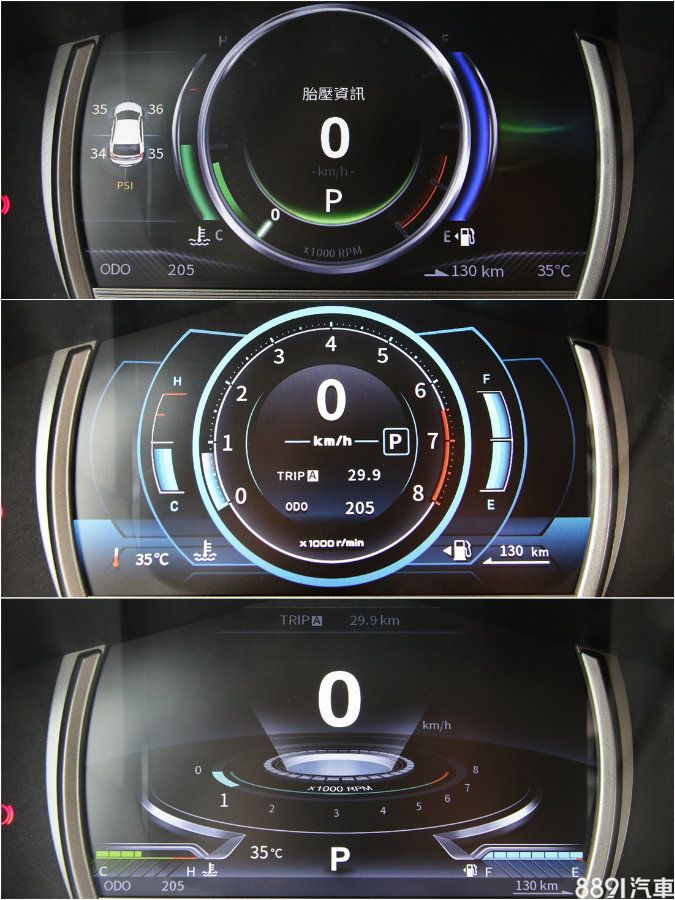 顯示於液晶儀錶的倒車顯影,清晰度與廣度還不差,並能同步顯示時速、檔位以及倒車雷達偵測的狀況。