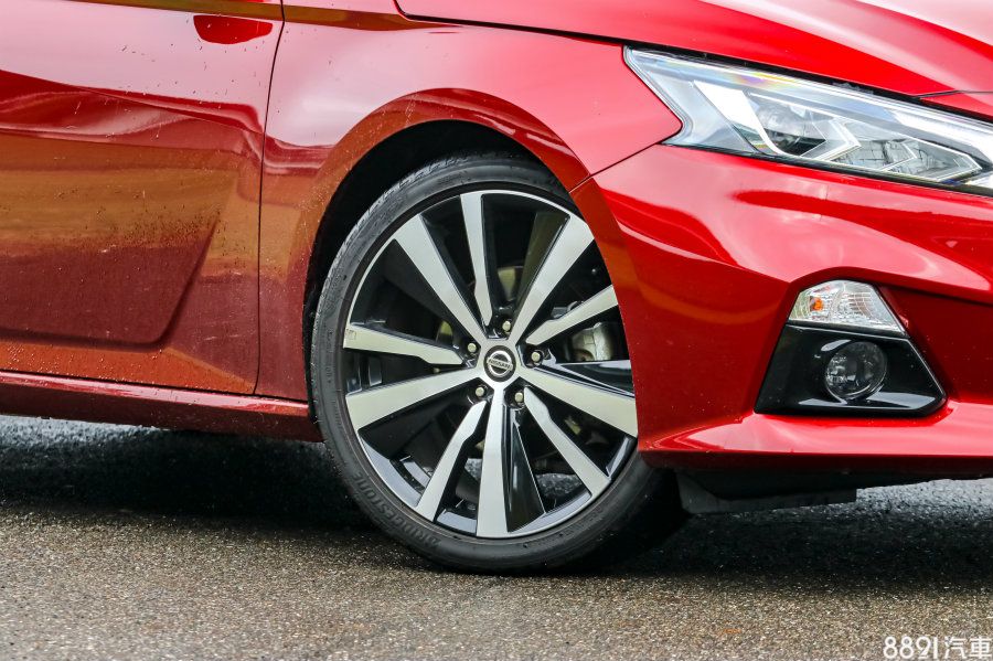 19吋胎圈能有效提升外觀氣勢,其素雅造型也符合車身曲線,整車造型渾然天成。配胎為225/45R19之普利司通Turanza T005跑胎,與Altima相同,但相較之下扁平比較高、胎面略窄,但依舊是「很跑車」的規格。