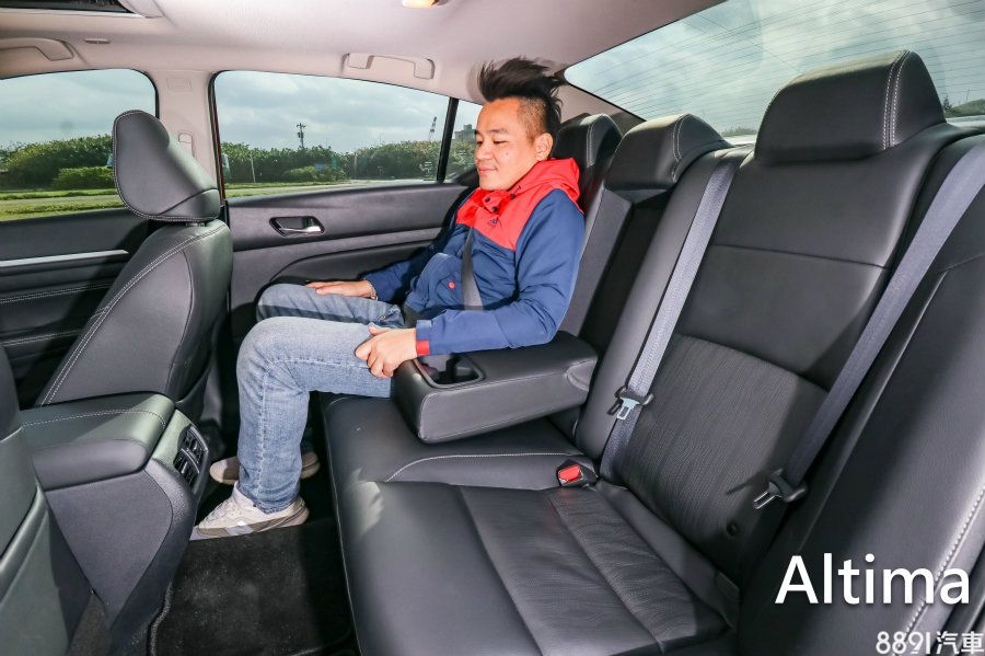 Altima後座椅同樣延續寬大、舒適的設定,椅背角度也相當適切,讓人有種放鬆、彷彿置身沙發的錯覺,舒適度相當理想。然而Altima後座頭枕為一體式不可分離,頭枕高度也稍嫌不足,若是身材較高大的乘客無法有效支撐頭部,算是小缺點。