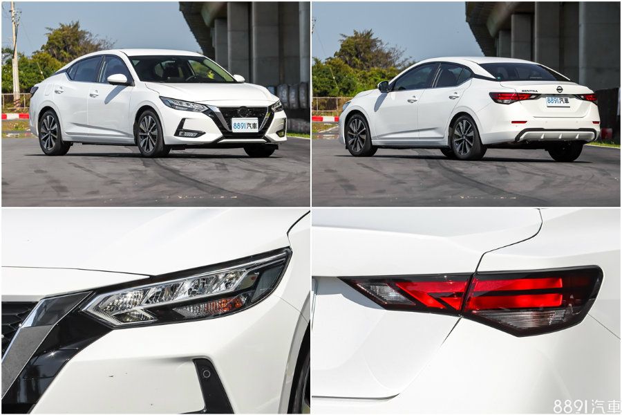 Sentra外觀屬於運動化路線,車身比例看起來低扁,車身線條也更加銳利,車尾C柱採懸浮式車頂設計,讓新Sentra看起來動感又有型。本次試駕的尊爵智駕版配有LED頭燈,附有HBA遠近光自動切換系統,頭燈科技有跟上主流,只可惜少了LED尾燈,視覺上不夠精緻。