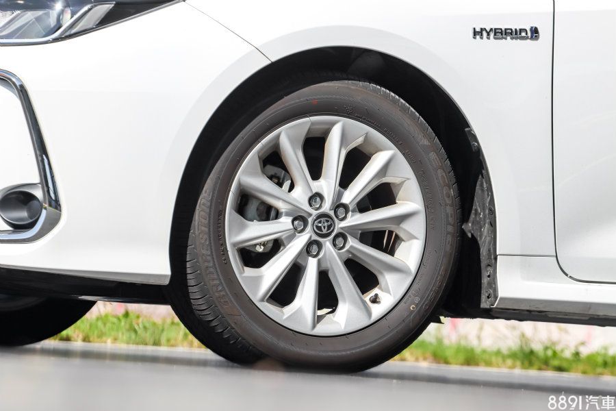 Altis入門油電款僅有16吋、單色塗裝,外觀看起來無對手來得搶眼。配胎為205/55R16普利司通Ecopia EP150節能胎,強調低滾阻、耐磨設計,呼應油電車屬性。