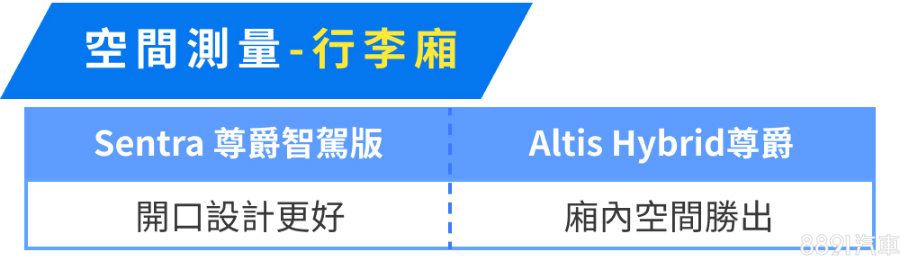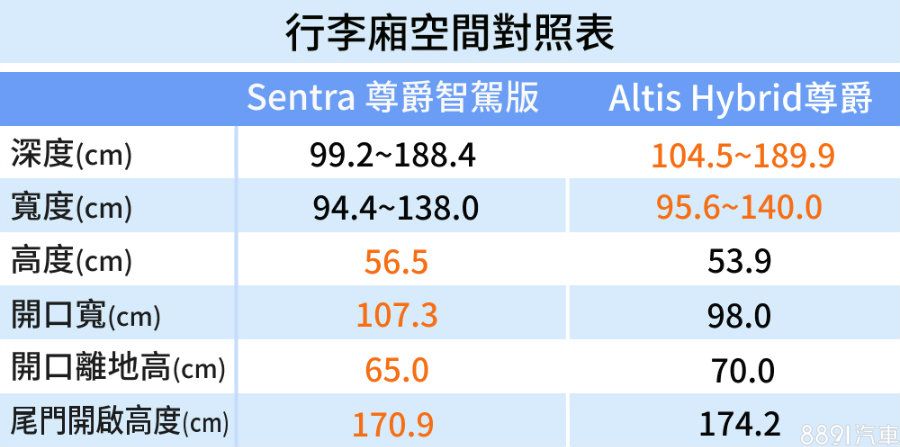 畢竟是房車格局,後廂內部設計無法如掀背、休旅來的平整,兩者在後座倒平狀態下都有落差,真要說誰更出色點,Altis在寬度、深度數據上更好一些。