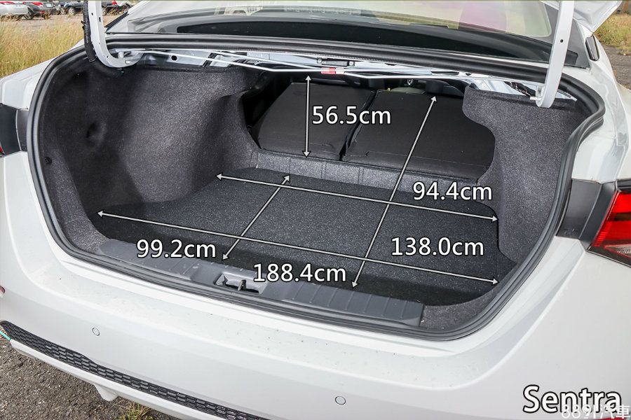 開口部分則是Sentra較出色,開口更寬、門檻較低,在取放物品時會輕鬆些,在兩者皆無電動尾門前提下,Sentra尾門開啟高也低,對個子小的使用者更友善。