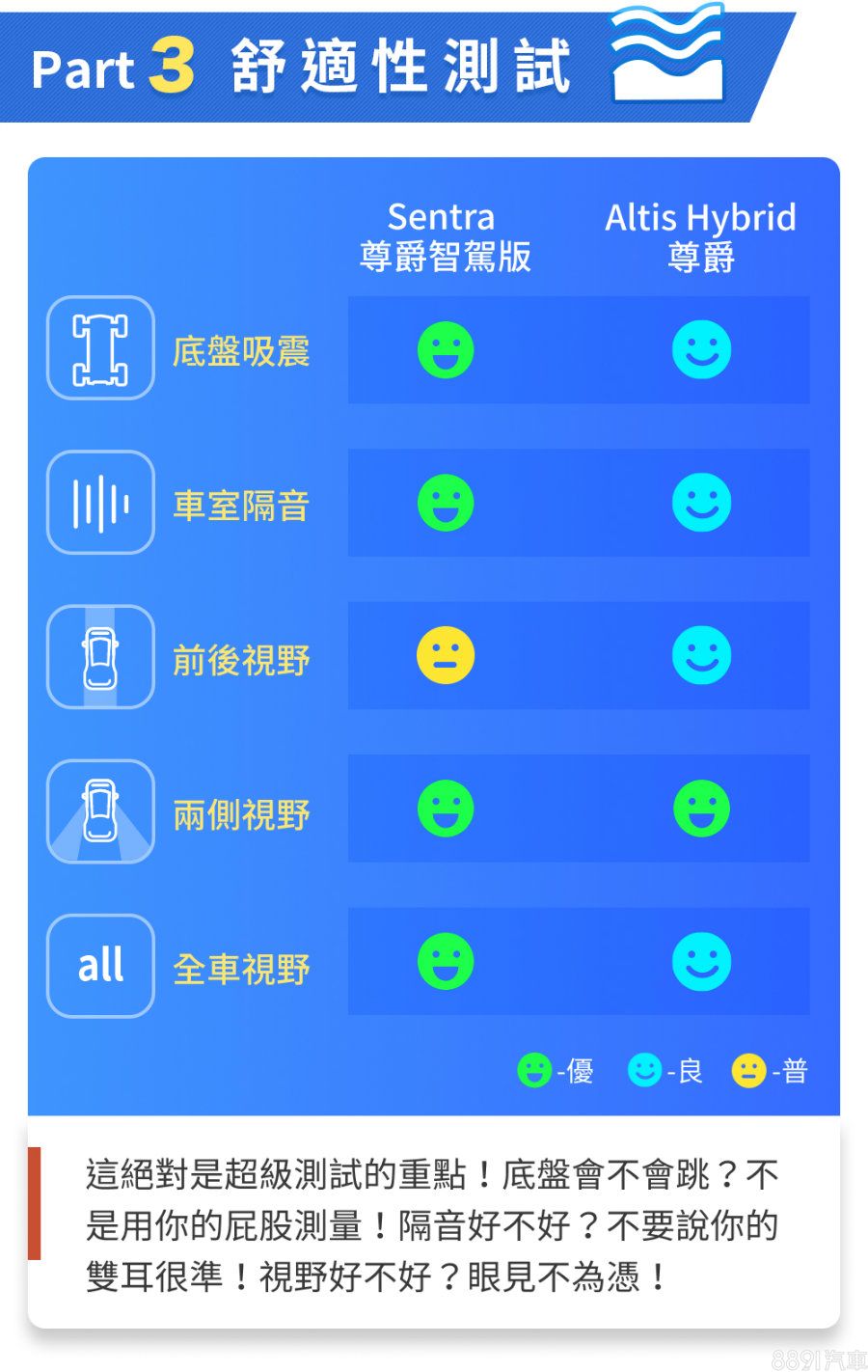 大改款Sentra外觀運動感較鮮明,但實際測試中,無論是加速、賽道都略遜Altis一截,並不具備跑格特質!但Nissan要調校出一輛「舒適房車」還是有一套,從寬闊的後座空間佈局,到優異的制震、隔音品質,不只讓駕駛得到行路質感,後座乘客也能被好好照顧,是輛自己開得帥,家人也滿意的稱職房車。