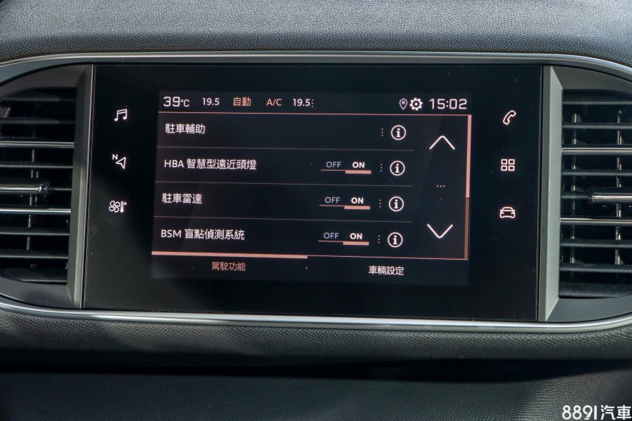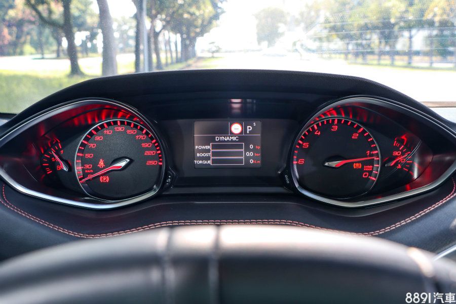 Sport模式下,儀錶刻度會由白色轉為全紅,中央螢幕也會顯示出力和渦輪增壓值,另外也可切換顯示車身G值變化,可以感受到雖然只是強調節能的1.5 BlueHDi動力,但Peugeot在模擬、營造運動氣息這件事情上還挺認真的!