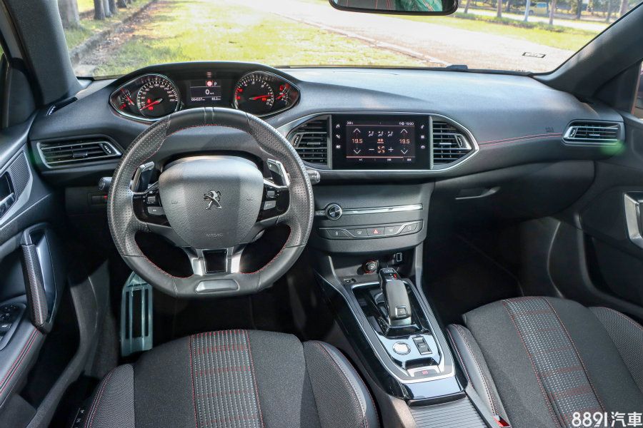 雖然問世多年,但308內裝設計並沒有太多過時感,仍是現今Peugeot風格,所謂的i-Cockpit懸浮式儀錶設計,每次見到都讓人感到新鮮有趣;而GT Line與一般車型最大不同便是採用紅色縫線,前座也換上運動化款式,整體來說,辦化度沒有很大,只是一些點綴調整。