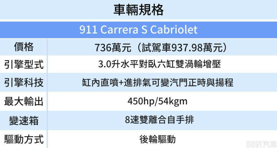 911當然是純種跑車,這次試駕的Carrera S,算是車系基礎,畢竟上頭還有Turbo、GT系列,因產品定位,Porsche只把馬力設定在450hp,在到處上演著馬力追逐戰的今日,450hp很容易被忽略,但我們測試完畢後,若用一句話總結,那就是「千萬別因為帳面馬力值而輕忽911的實力」!