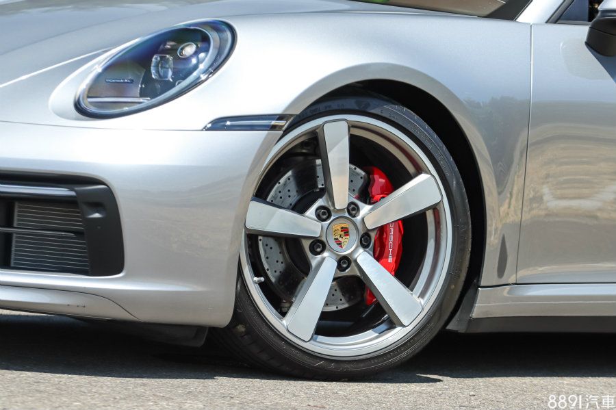 剎車規格為標配設定,前6、後4活塞卡鉗,前後碟盤均為350mm,雖然沒有選配PCCB碳纖維陶瓷剎車,但制動力仍充足 。鋁圈加價15.12萬升級Carrera Exclusive Design款式,造型雖簡單,但表面色澤細膩有質感,配胎則是前245/35R20、後305/30R21的固特異Eagle F1,用起來沒什麼可以挑剔的。