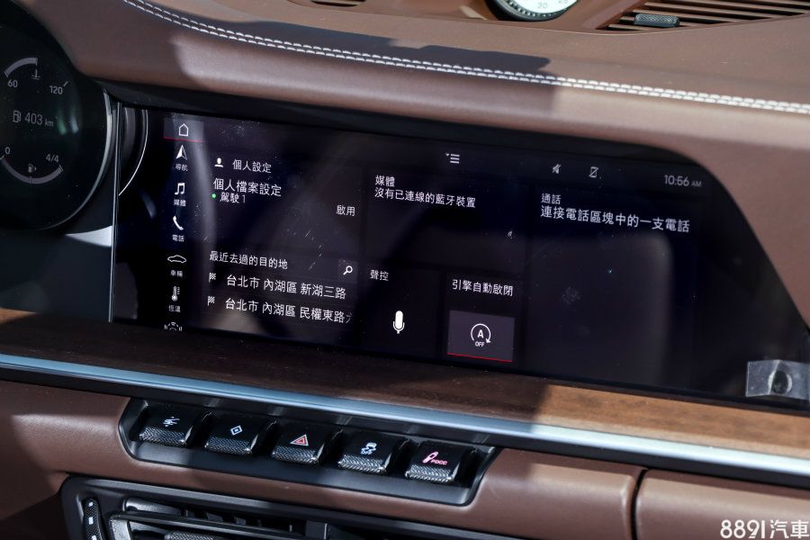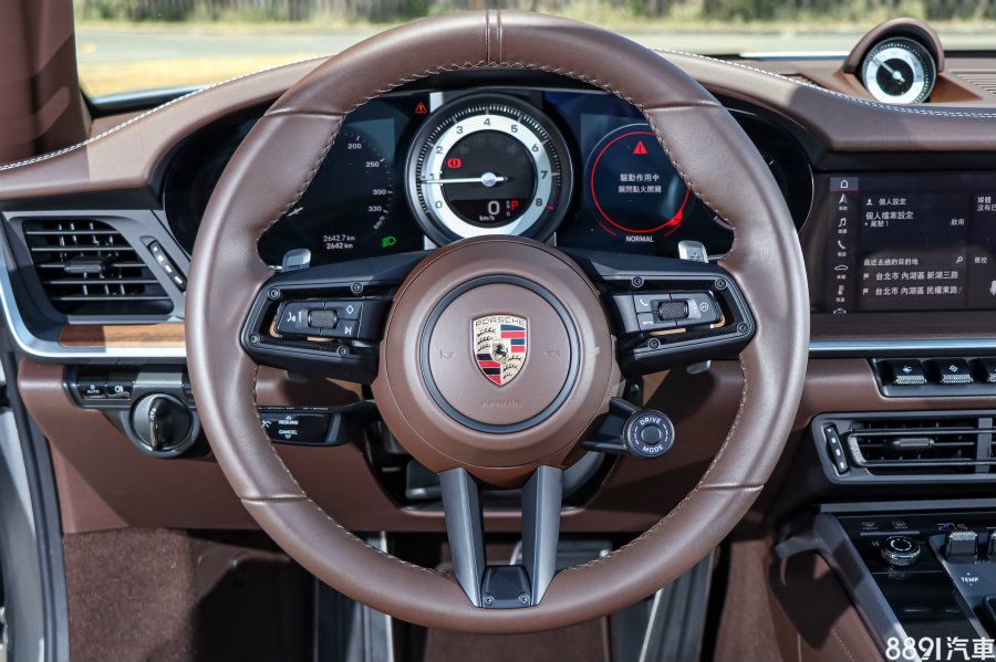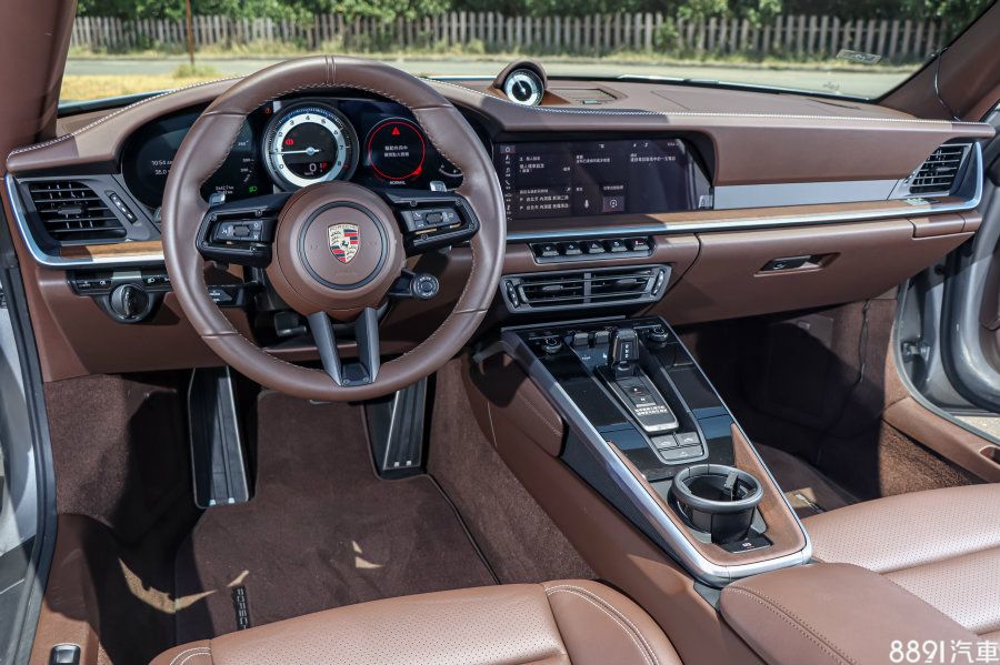 試駕車選用松露棕色天然真皮(34.4萬),流露一股典雅莊重的氛圍,與之搭配並非鋁質或碳纖維飾板,反而是名為新幾內亞胡桃木飾板,這點倒是讓人頗為訝異,包含高達10.23萬的選配價,不過木紋質感與成色都相當細緻,驗證了保時捷高度客製化的功力。