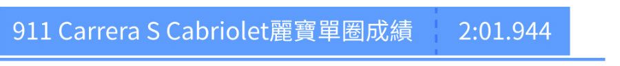 911絕對是一輛不會讓你失望的純種跑車,千萬別覺得450hp馬力不夠兇悍,而是先問問可以把450hp馬力發揮到多少!由於測試當天有執行時程控管的壓力,我們僅能進行10圈測試計時,在安全為首重為前提,盡可能探索911 Carrera S敞篷極限,最後在麗寶大圈場地(23個彎道)的單圈紀錄是2分01.944,合理的推論,此車絕對有兩分內的實力!