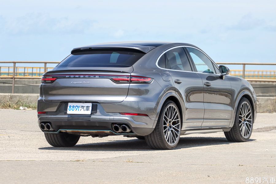 車尾最顯著的部分就屬主動式尾翼,這項配備原本在Cayenne Turbo才可見到,不過在Cayenne Coupe上則是全車系標配,內含在主動空氣力學套件內,不過位置稍稍調整,變在尾門上頭,並且加大了面積,當時速90km/h以上時會向後延展135mm,不僅下壓力會增加,視覺熱血度也同樣高漲。Turbo版均配左右雙出排氣尾管,試駕車另加價18.11萬元選配跑車化排氣系統含銀色排氣尾飾管。