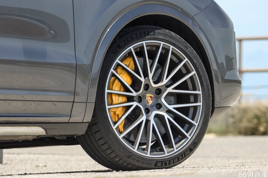 Cayenne Turbo Coupe標配21吋鋁圈,尺碼已比其他車型大,但試駕車又加價13.71萬,改用22吋RS Spyder款式,造型雖複雜花俏,但「滿版」的視覺感更為霸氣,配胎則是前285/35R22、後315/30R22的米其林PS4S跑胎;裡頭則是PCCB碳纖維剎車系統,得加價37.96萬擁有,前碟盤直徑達到440mm,後輪也有410mm,卡鉗則是前10、後4活塞設定,制動效果無庸置疑!