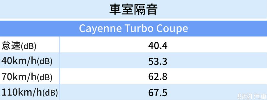 Cayenne Turbo Coupe車內隔音表現相當出色,底盤、引擎隔音好之外,高速路段巡航也沒什麼風切聲,就算經過坑洞車體也毫無任何異音,符合頂級豪旅水準,唯獨在選配跑車排氣系統後,能隱約聽到飽滿渾厚的排氣聲浪,但並不擾人,豪華感又帶點熱血氛圍,這才是保時捷客群要的!