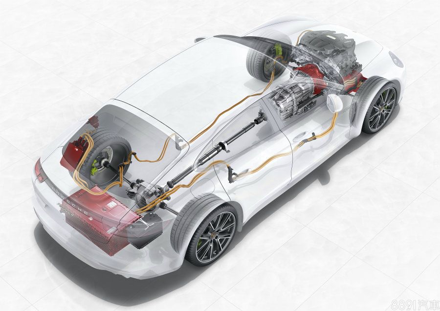 這套油電系統為串聯結構,馬達位於引擎和變速箱之間,大型鋰電池則放在車尾,可提供50km純電續航力,而馬力高達680hp的Turbo S E-Hybrid也是採用相同的電力架構。