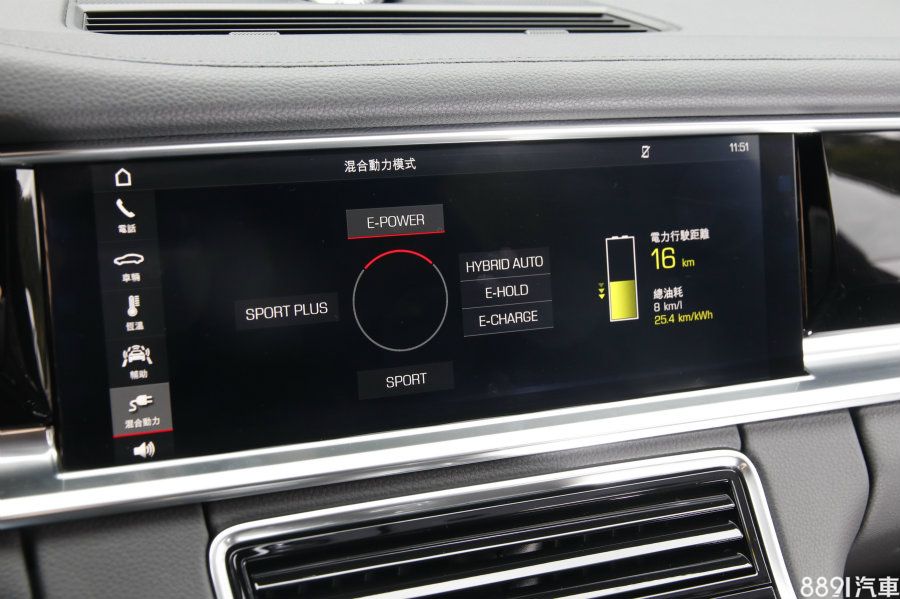 若從中控台12.3吋PCM系統進入行車模式選項,可發現Hybrid Auto還可細分E-Hold保存當下電量、E-Charge引擎發動充電的狀態。