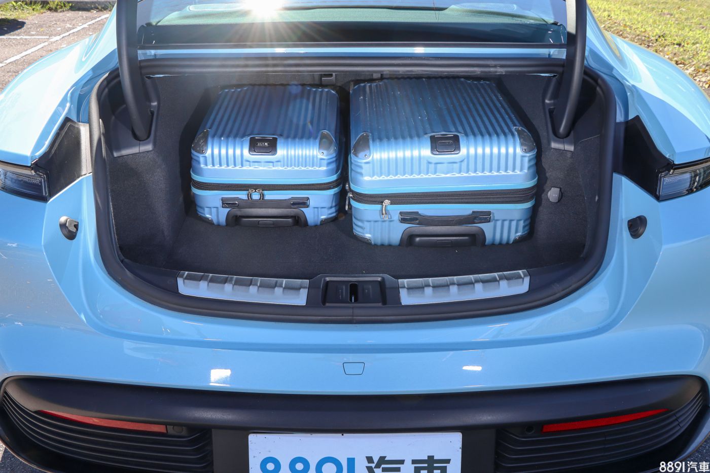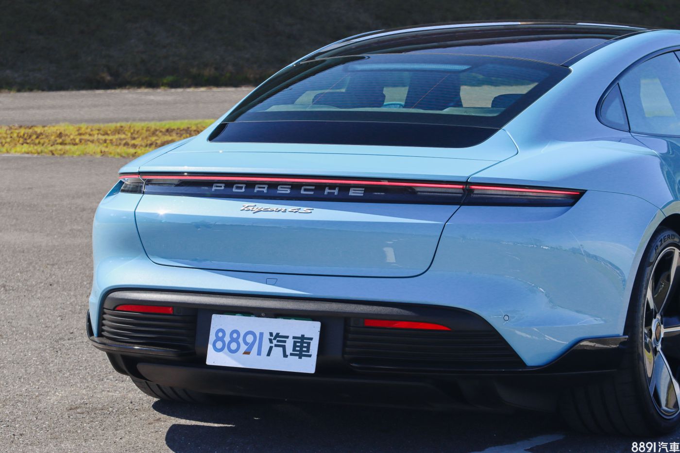 車尾橫貫式尾燈是新世代保時捷共同語彙,但燈條僅有在小燈開啟時才會亮起,白天看起來就沒那麼「美型」。後檔下方到保桿上緣則是後行李廂蓋,也就是說Taycan採標準三廂房車設計,尾門並非Panamera那般斜背開啟。