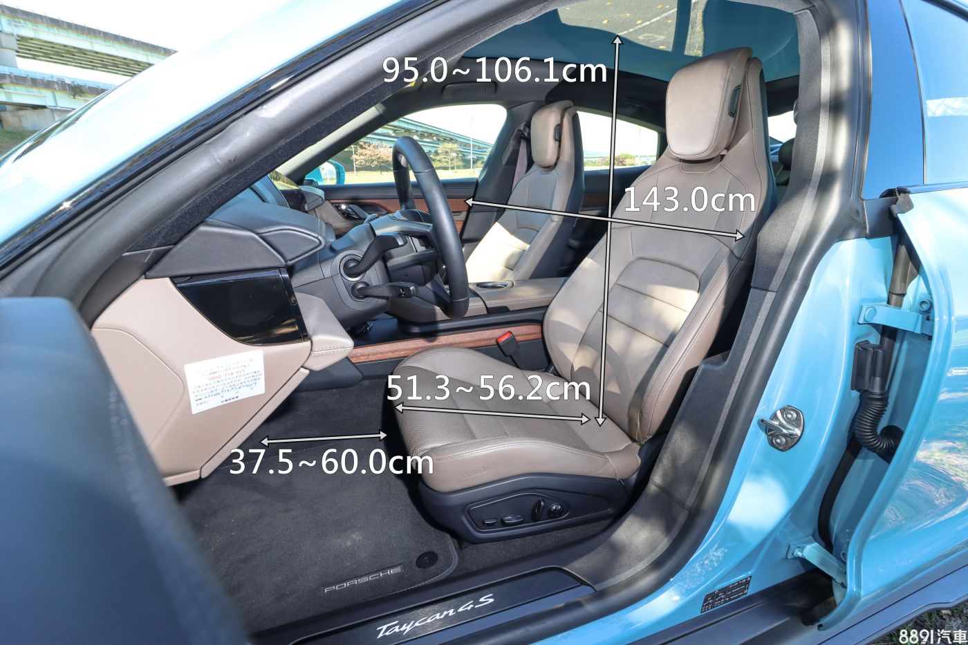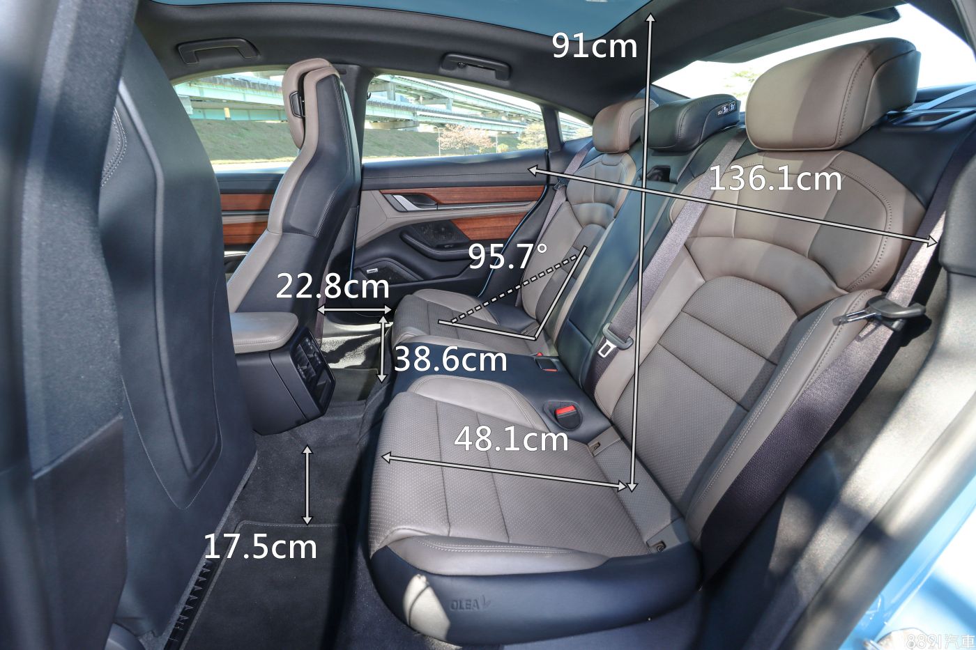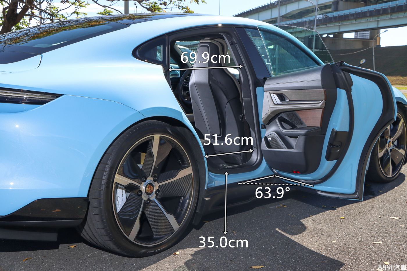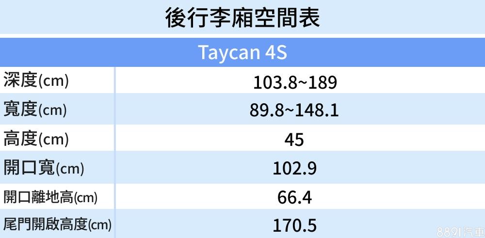 Taycan的開口寬度表現一般,後門開啟角度也偏小,綜合空間數據來看,後座舒適度並非此車強項。