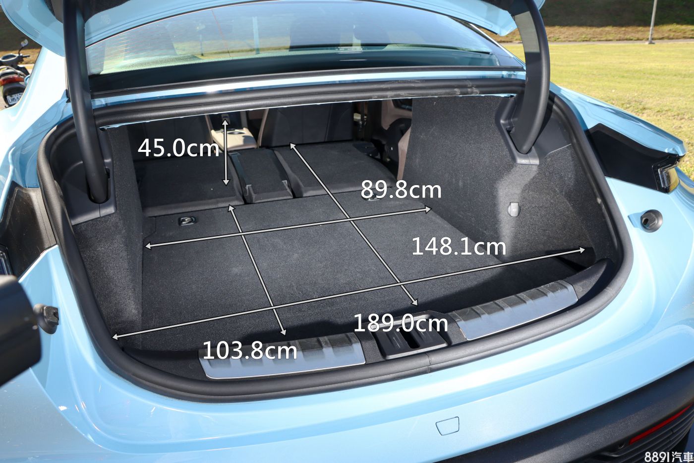 後廂標準狀態的容積為407L,內部的實測數據並不出色,深度或高度均不如小一碼的中型房車,至少傾倒前後的平整度佳,也能滿足一般購物或放置高爾夫球具的需求。