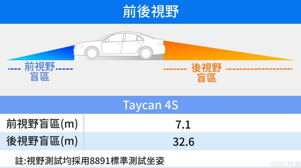以跑車身形來說,Taycan的A、B、C柱外觀看起來都不算粗壯,但車內裝潢飾版厚實,尤其是B柱還要藏冷氣出風口機構,不免犧牲左側視野,讓總遮蔽來到28.3%,跟一般房車比遮蔽仍較多。