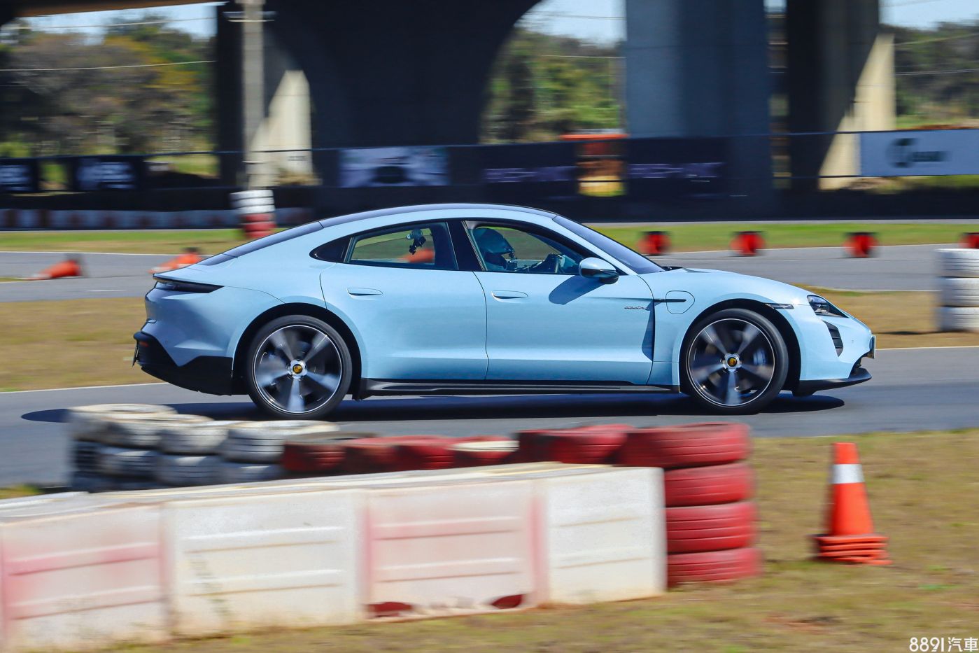 這輛Taycan 4S跟底盤操控有關的選配頗多,像是21吋圈胎、PSCB表面塗層煞車系統、PTV Plus扭力分配導引、PDCC Sport主動防傾系統,不過後軸轉向系統缺席未選,猜測窄小急彎的身手難免無法更上層樓,加上Taycan身形不小,車重超過2.2噸,在下場前,很難推估Taycan 4S在這個小場地的表現究竟為何?