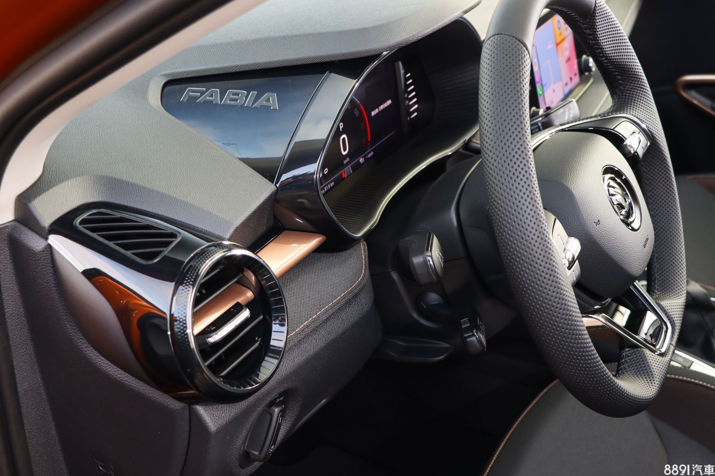 新Fabia維持一貫簡單的水平線條,除了兩側出風口是「圓形」外,其他並沒有太多著墨,不過全面導入的數位化座艙就非常有感,不僅視覺上科技感十足,原本單調的車艙也頓時增色不少,光用看的確實很難與入門小車聯想在一起!