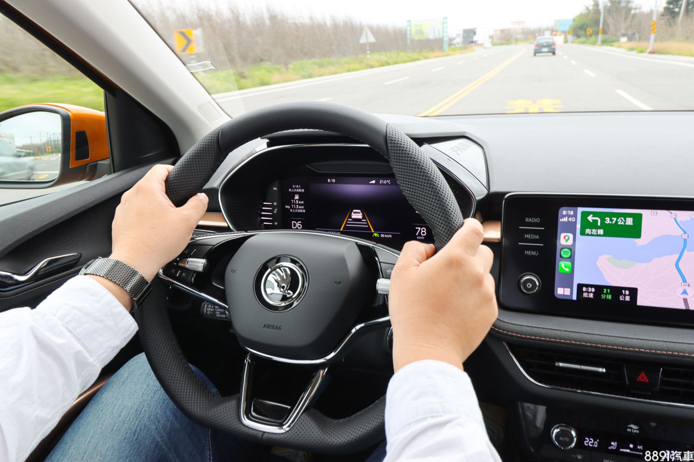 國內販售的上一代Fabia就以標配6氣囊、ACC、AEB作為主打,在當時即被視為「安全小車」的標竿,而大改款後再將標準向上提升,不只全車系標配9氣囊,時下流行的Level 2駕駛輔助也沒有缺席。以當天的使用心得來看,啟動跟車後加減速都算線性,穩定與前車保持車距,並能持續修正方向盤以維持在車道中,即便偶遇小幅度彎道,亦能做出小角度轉向輔助,給人十足的信賴感,特別要提的是ACC的撥桿設在方向盤後方,使用上需要稍花時間才能適應。