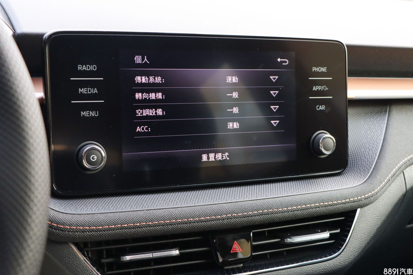 Fabia雖然是入門小車,但卻配備了同級少有的駕駛模式選擇,提供有節能/一般/運動/個人四種行車模式,各段模式之間差異還算顯著,個人則能針對轉向手感、傳動、空調乃至ACC模式進行細部調校。
