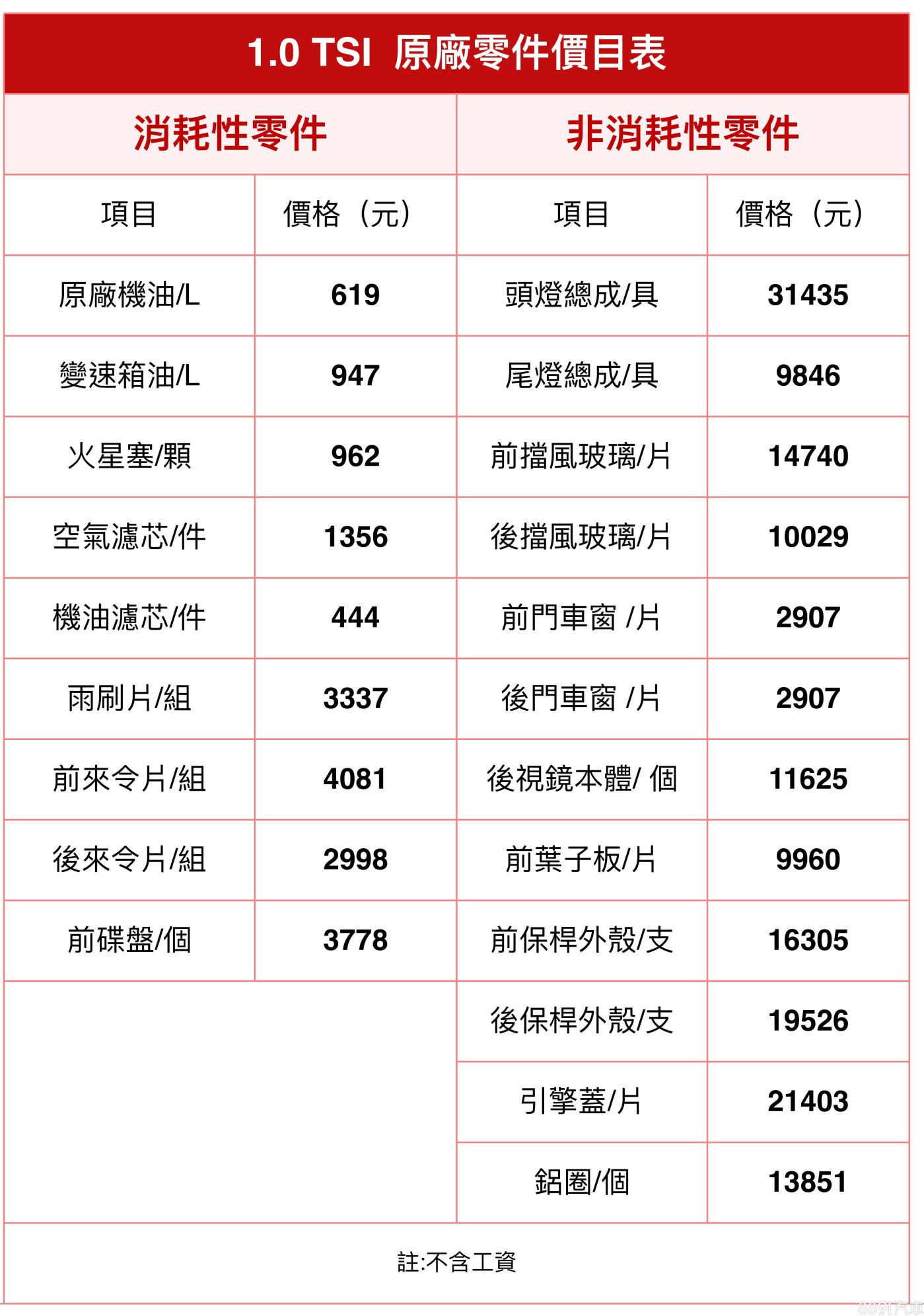 已消耗性零件來看,價格多數都屬合理範圍,僅有雨刷一組3337稍貴一些,車主可自行評估外廠品牌比較更換。