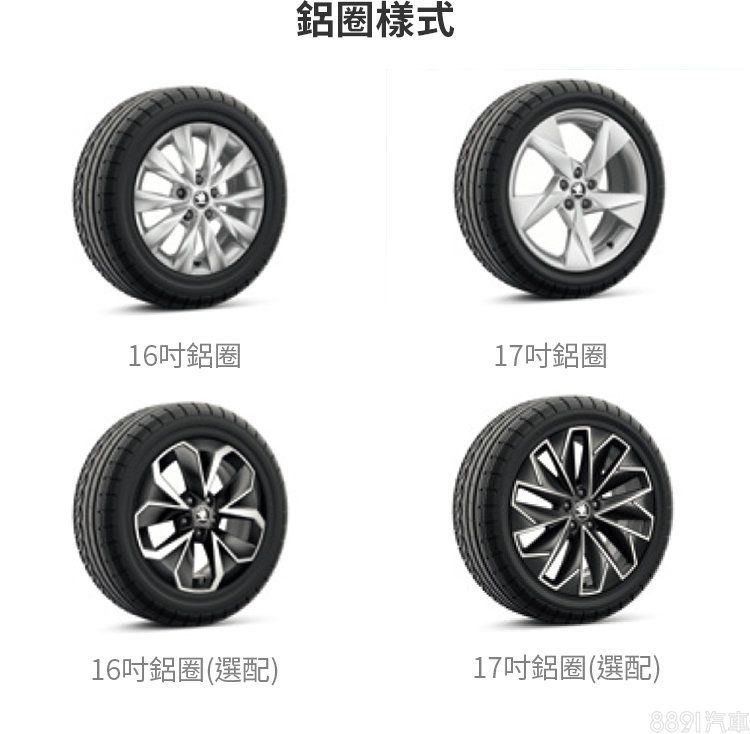 動能版標配16吋鋁圈,豪華動能版及豪華菁英版則升級為17吋。另還有16及17吋各一款不同式樣的鋁圈可選配。