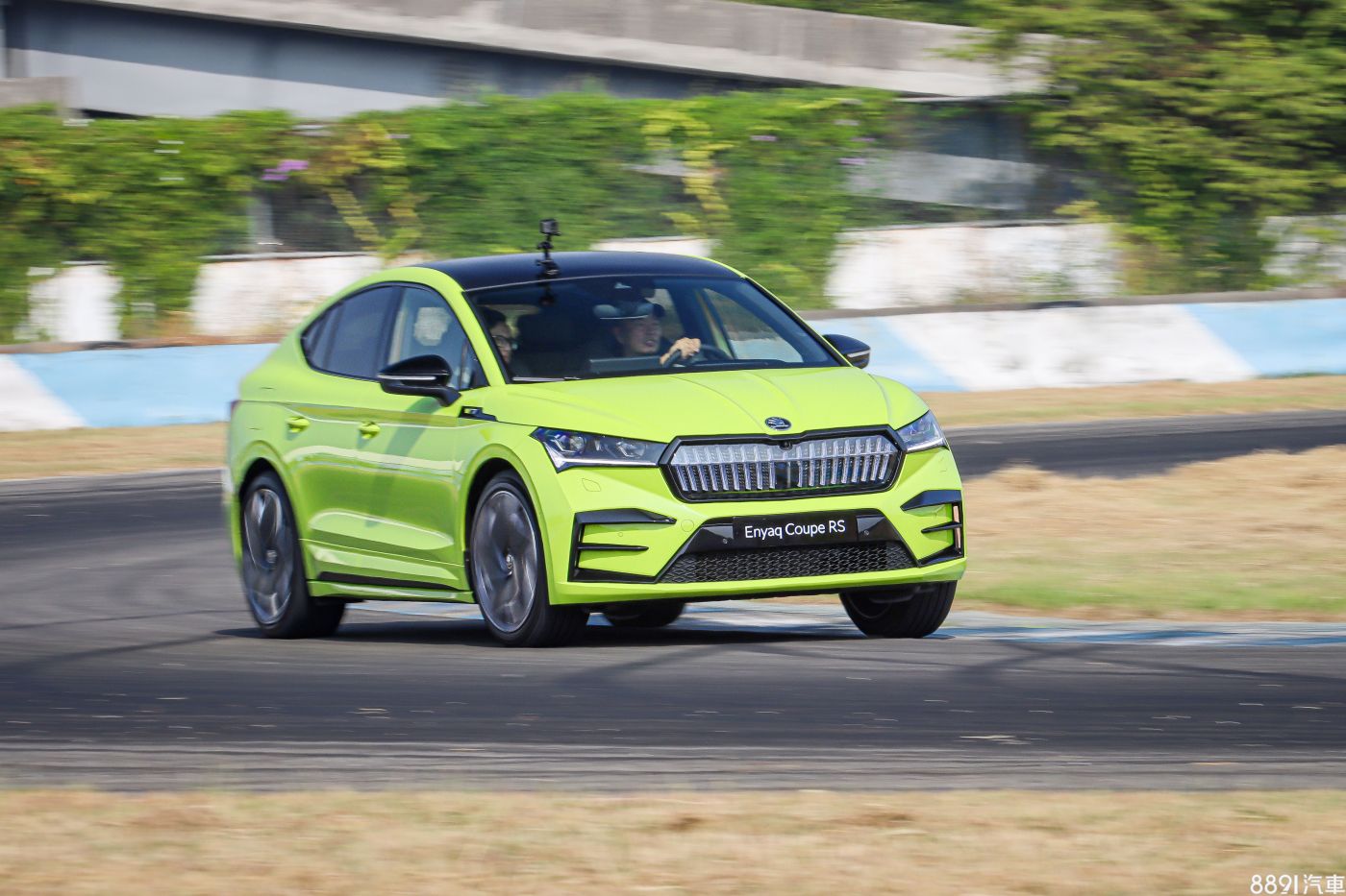 Enyaq是Skoda首款純電量產作品,其實早於2020年9月就發表,終於要在明年第二季正式導入,而這次賽道體驗的是Enyaq Coupe RS運動化車型,不過活動車款的配備與規格並不是未來台灣會販售的版本,算是先行淺嚐,我們已於先前的預賞活動,做了內外觀貼身近賞,本篇就以賽道體驗為主。