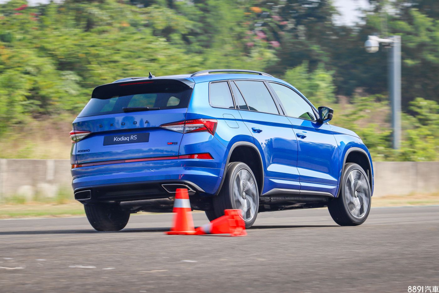 必須要提的是,這次體驗車款採用235/45R20的米其林PS4 S,屬於高階性能胎,對抓地力有直接幫助,而這次活動都是以運動模式、開啟循跡系統的狀態下進行,在繞錐、彎道體驗的過程中,會發現Kodiaq RS循跡系統介入的時機很早,感覺底盤與輪胎都還沒到極限,但系統已經開始限制動力輸出,讓人覺得有些綁手綁腳,但畢竟是休旅定位,以安全為主的設計能夠理解,但嚐過暢快的操駕底子後,反而讓人想試試關掉循跡、解放的真實力。