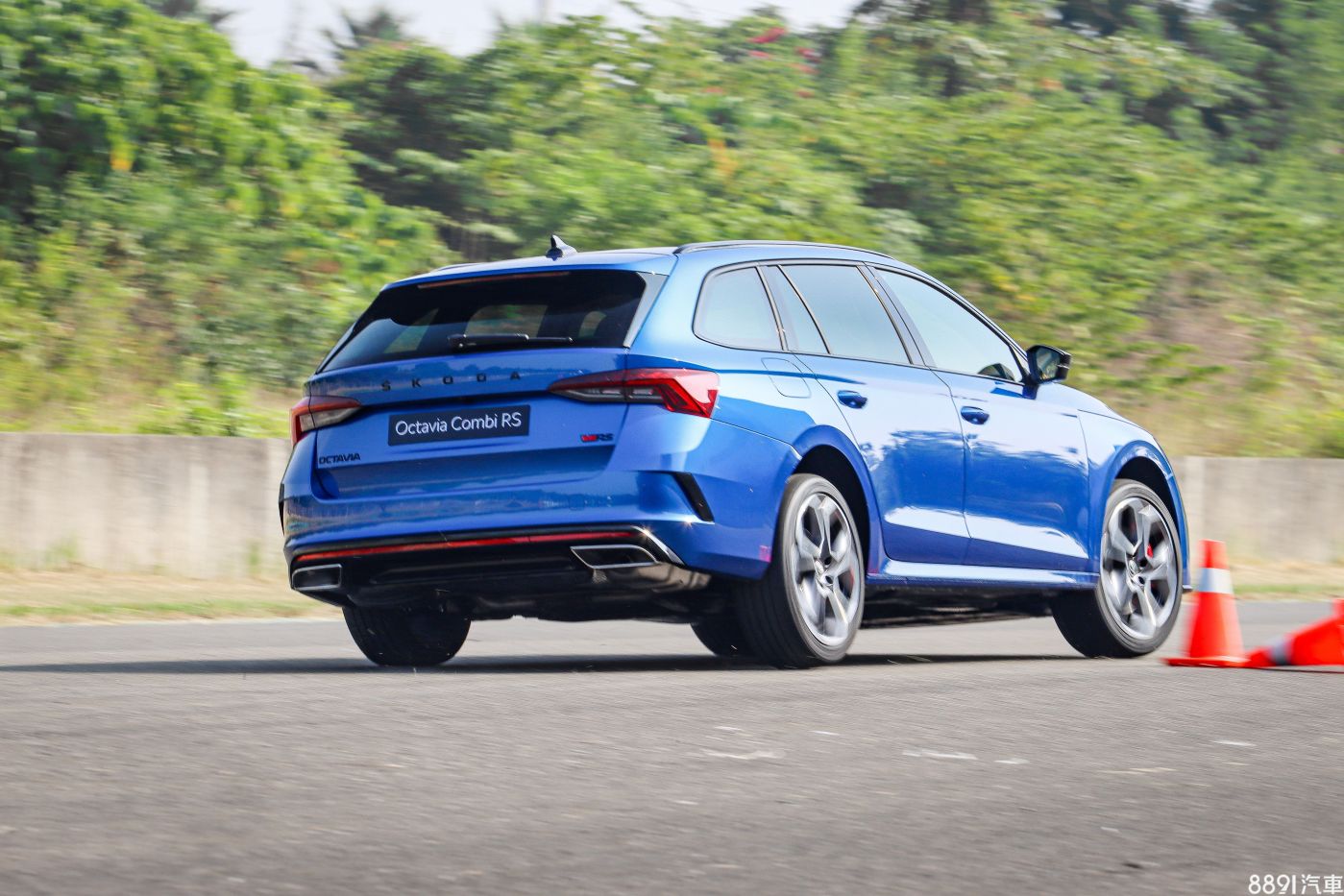 Octavia Combi RS是這次同場唯一的前驅車,但同時也是重量最輕、尺碼最小的,而體驗車款輪胎同樣換成米其林PS4 S,尺寸是225/40R19,側向抓地力出色,很容易保持在既定路線上,給人的信心很高!雖然不到刀切豆腐那般俐落,但由於前面剛開完兩部休旅,馬上換到Octavia Combi RS那個體感差異是相當大的。