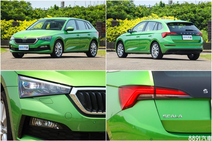 Scala不像同場對手都有比較運動化的設計風格,看來也顯得成熟一些,不過有稜有角的外觀還是蠻有特色,以國內的車系編成來說,兩種動力的豪華版均為圖中配置,頭燈雖然都是LED光源,但高規多了轉向輔助燈、AFS主動轉向與頭燈清洗裝置,樣式也有差異,全LED尾燈也多了序列式方向燈功能,此外,高規版本專屬的全鏡面式設計尾門辨識度也更高。
