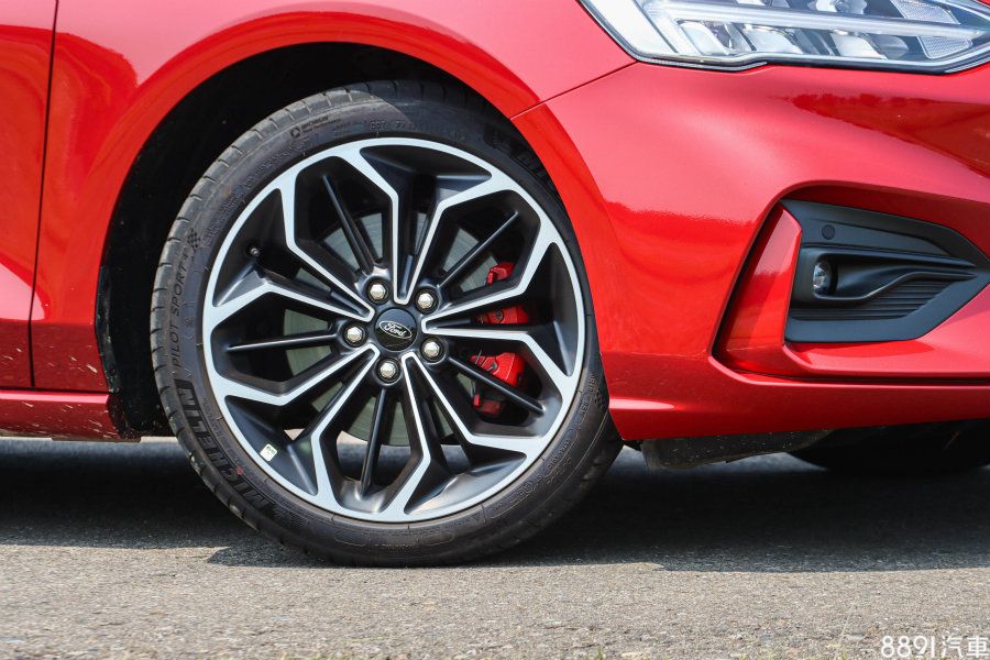 18吋鋁圈的造型設計感強烈,配胎為235/40R18的米其林PS4,和此車運動化設定有理想的搭配性,此外,Lommel版的煞車系統也經過升級,採用紅色塗裝卡鉗,前碟盤尺碼也比一般ST-Line更大。