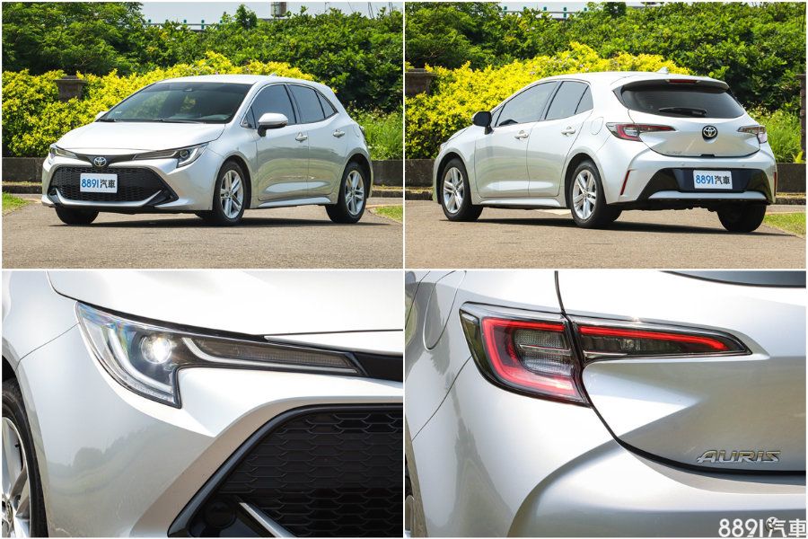 兩款等級的Auris都是一樣的空力造型,只差在前下氣壩的鍍鉻飾條、後染色玻璃與圈胎配置,車頭線條與頭燈輪廓銳利,有頗為兇悍的視覺感,和Mazda3五門與Focus ST-Line一樣都是運動化的年輕路線,雖然頭燈一樣是全LED光源並具備自動遠燈啟閉功能 ,但水平調整為手動機構,便利性稍微打了折扣。