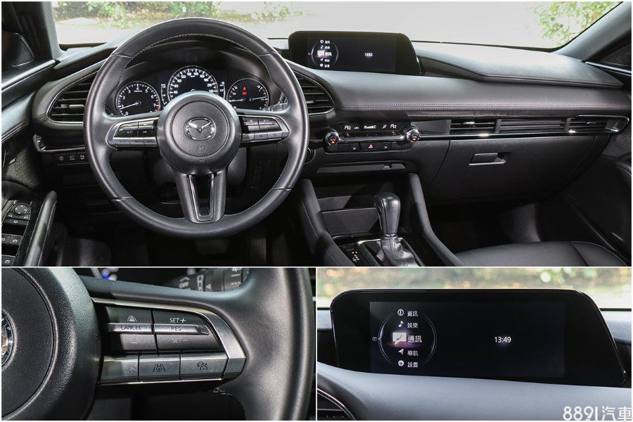 Mazda的內裝質感與設計感為同場最優,上半部和門板部分運用大量皮質,觸感佳且賞心悅目,各項按鍵、旋鈕的操作回饋也頗為細膩,確實營造高級車的氛圍,而且有鮮明的運動氣息。車載多媒體系統為8.8吋螢幕,只能從中央鞍座的旋鈕操作,螢幕不能觸控,解析度和流暢度良好,功能也齊全,只有內建導航需要加價選配,此外,最高規的BOSE音響聽起來真的挺不錯!ACC定速、車距調整、車道偏移等功能介面集中於方向盤左側,操作就手且類金屬材質的按鍵質感討喜。