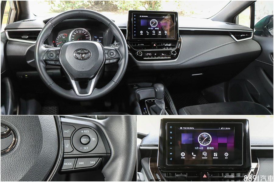 Auris內裝不像Mazda3那樣有層次或Focus的專屬運動化設計,整體看來仍屬於年輕化的俐落風格,軟質塑料面積和車縫線也帶來還不錯的質感。8吋觸控Drive+系統的功能性弱於其他對手,也是同場唯一沒有倒車顯影的車款,想要擴充其他功能需要額外加價,就連操作流暢度也是最差的。Auris擁有實用的TSS 2.0系統,同樣可以在方向盤右側完成操作,使用上的便利性沒什麼問題。