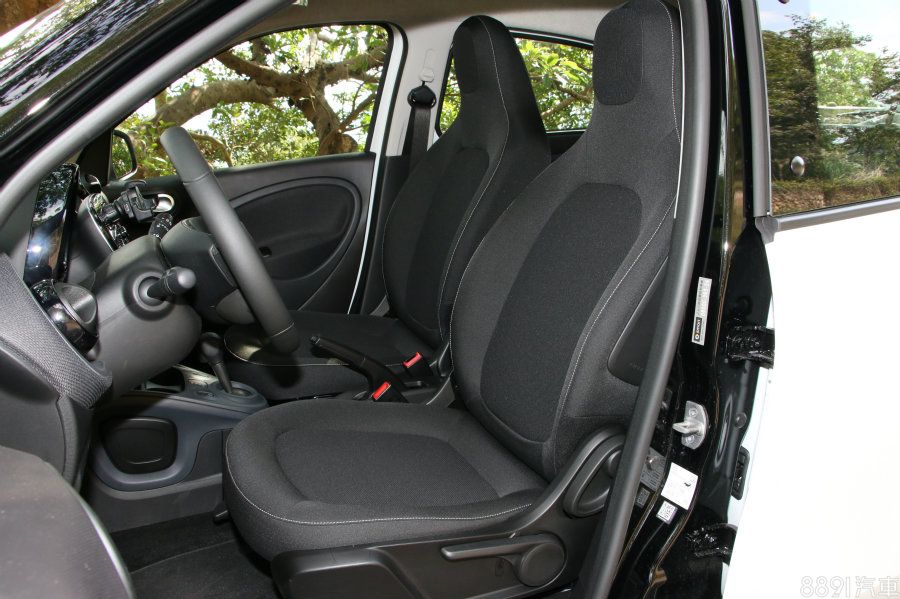 試駕車型為黑灰雙色的黑織布座椅,而在passion車型上還可選黑色真皮材質,以及可不加價選配雙前座加熱機能,駕駛座附手動調整高度。