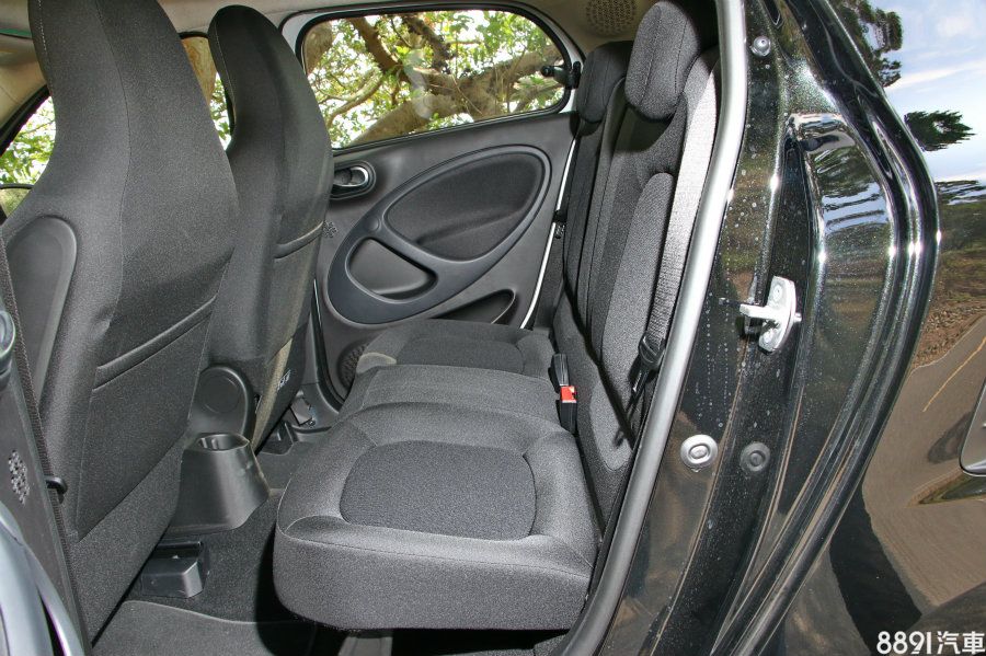 雖有後座設定,但因只有2組安全帶,法令上僅能乘坐2人,這點需要注意,且無中央扶手,不過在後座同樣也有ISO-FIX兒童安全裝置,passion車型的椅背可以5/5方式傾倒,還算保有機能性。