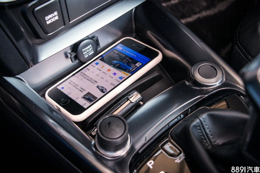 排檔座前方設有小型置物空間,放置手機、鑰匙等小物恰如其分,但缺乏無線手機充電介面較為可惜。可見到置物格前方有另一組12V電源,轉接後能彌補USB插孔不足的小問題。