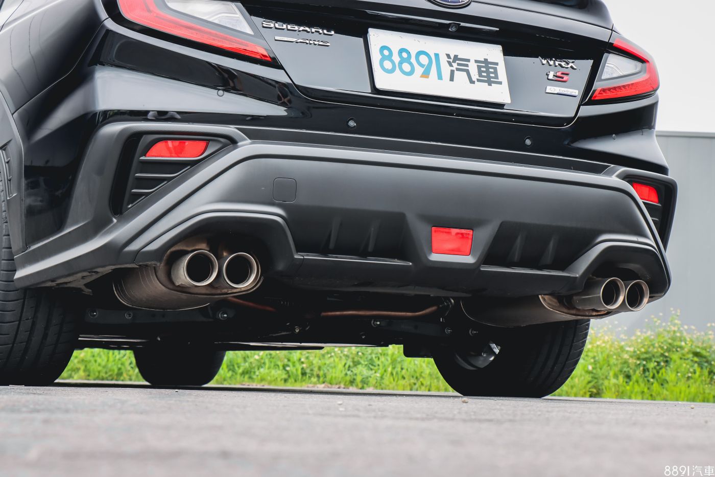 四出尾管是WRX外觀的招牌特色之一,搭配造型搶眼的保桿設計,很有性能味,不過排氣聲相當「安靜」,是我覺得比較可惜的地方。