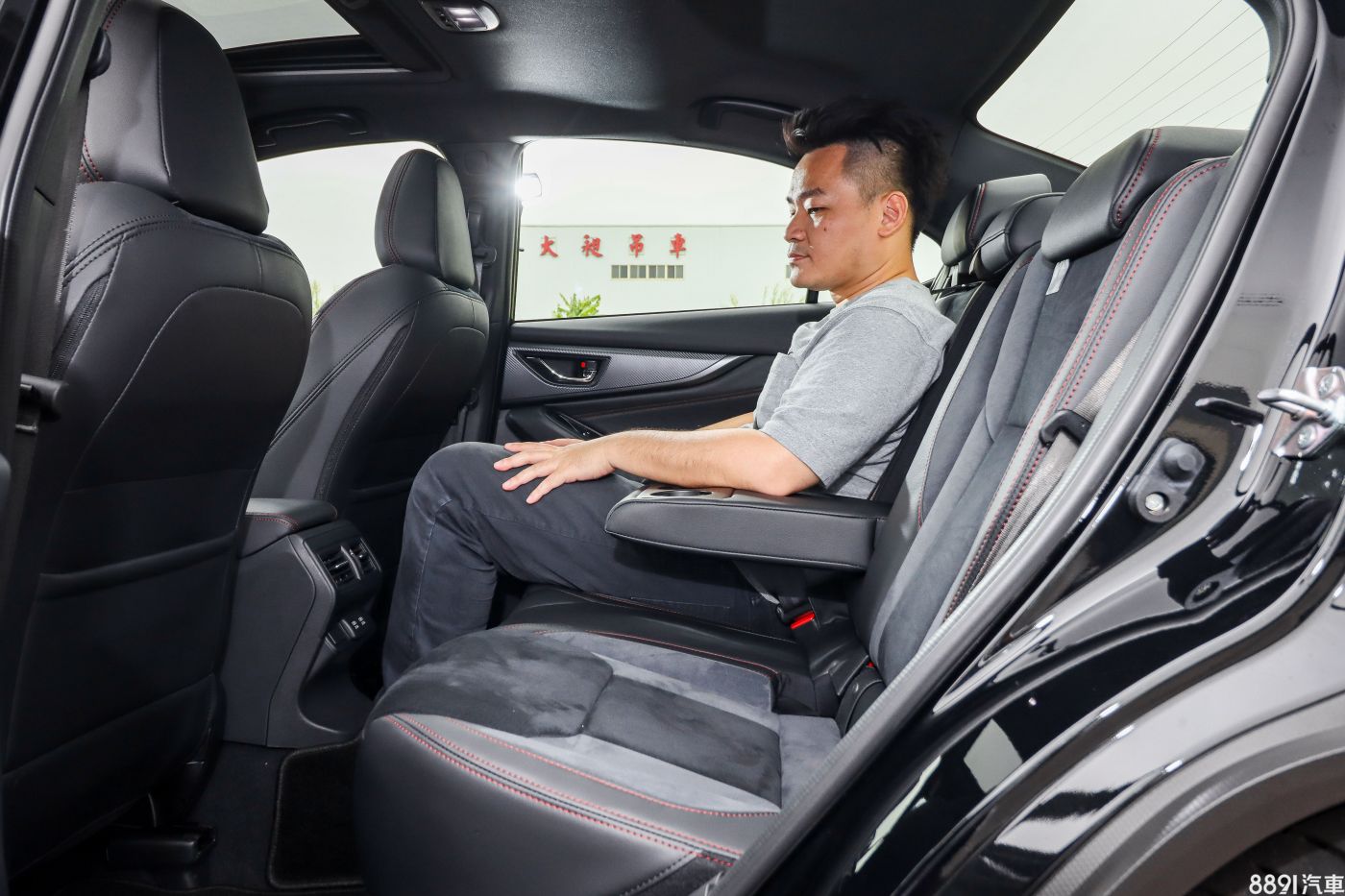 雙前座採用類麂皮+皮質包覆的跑車座椅,周圍以紅色車縫線點綴,頭枕上還繡有WRX字樣,性能氛圍十足,不過坐起來不是硬派路線,坐姿稍微高了點,泡棉也是偏舒適取向,駕駛座有10向電動調整與記憶功能,副駕則為全手動。