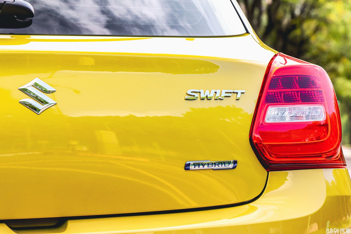 尾燈採用LED光源,夜晚提供絕佳的辨識度,下方的Hybrid銘牌則代表SUZUKI SWIFT採用輕油電科技,電動馬達助力帶來能源局測試22.3km/L平均油耗表現。