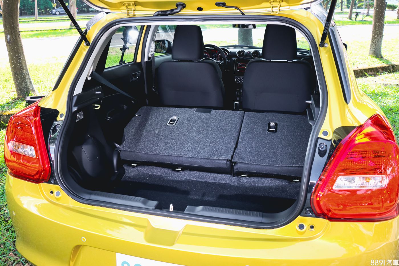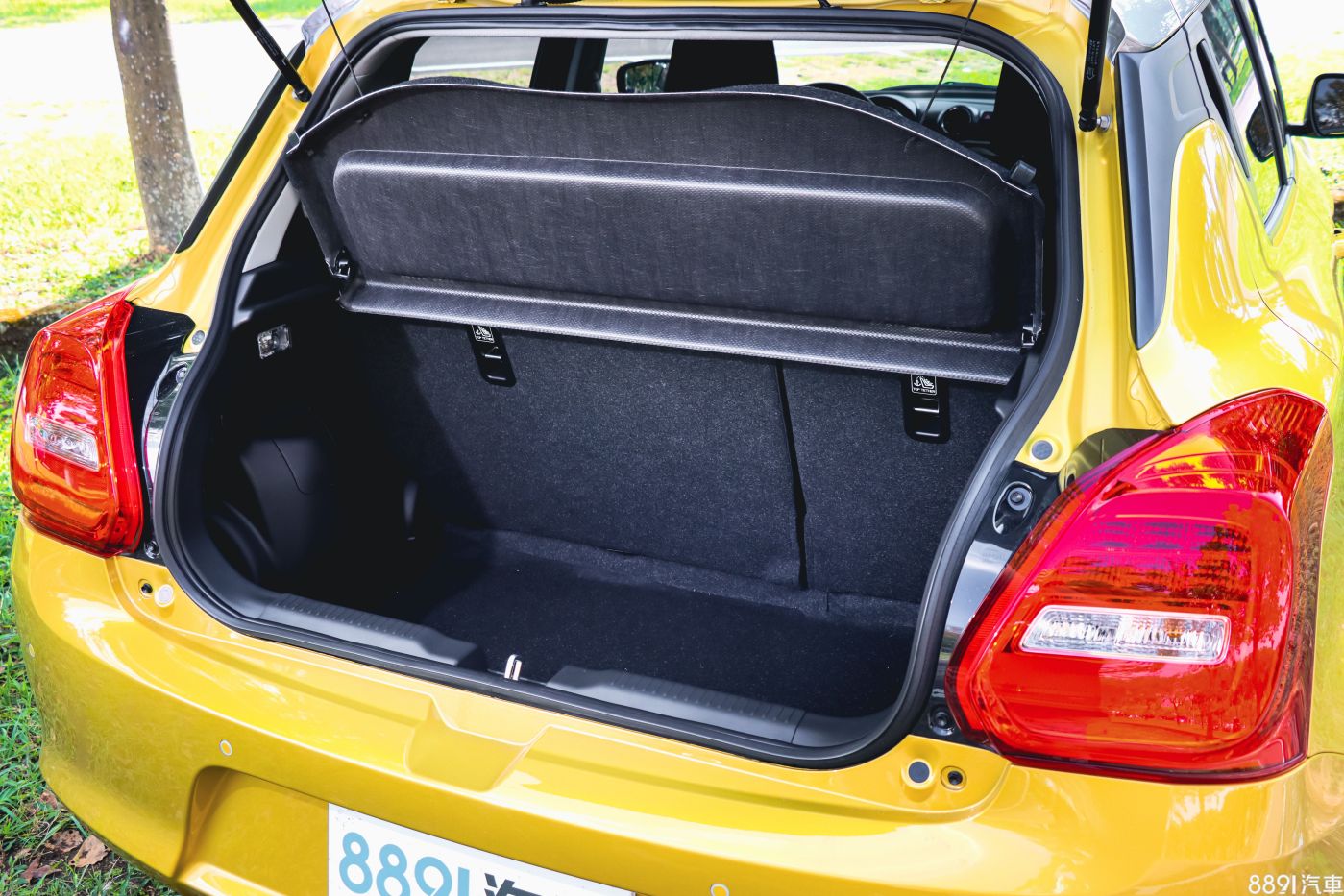 SUZUKI SWIFT提供265L行李箱空間,內部深度相當充裕,上方還附有帳板增添隱密性,滿足日常生活需求沒問題!