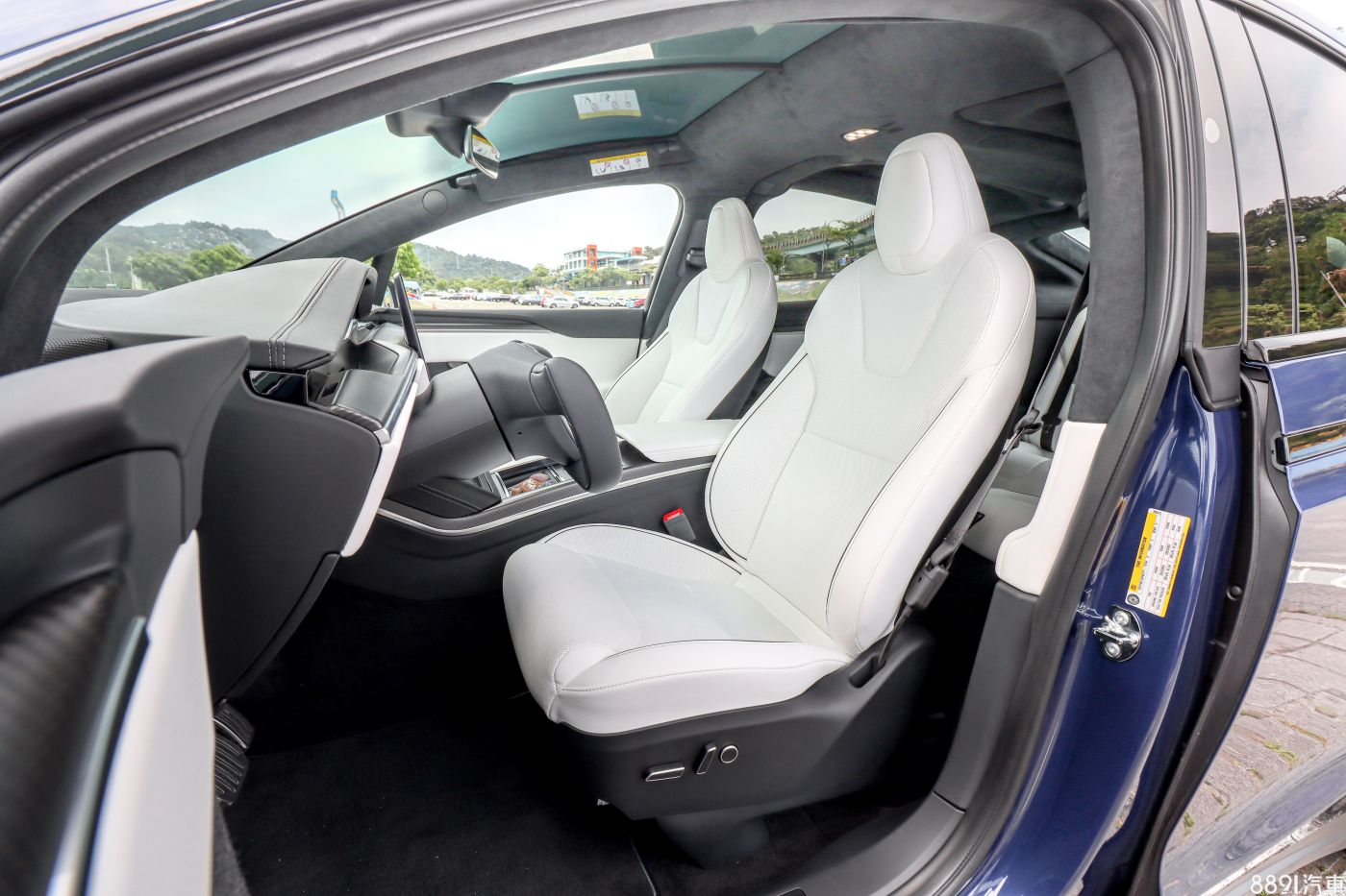 Model X Plaid僅能選6座配置,二排的獨立雙座,採用與前座造型差不多的設計,坐起來一樣舒服,也支援前後電動滑移和前傾/回復,頭部和腿部空間表現均十分寬裕,唯一缺憾我認為是沒有扶手。