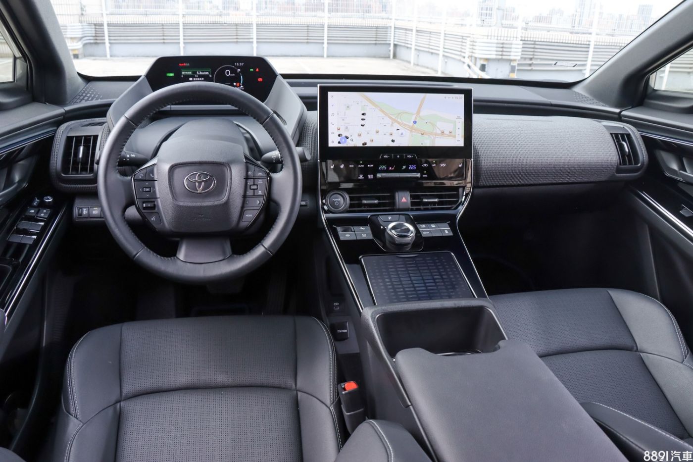 bZ4X內裝乍看之下很科幻,不論是儀錶位置,還是中央排檔座設計,都有滿滿的科技味,但事實上操作邏輯與傳統油車大同小異,保留大量實體按鍵,使用起來沒特別需要習慣之處。唯一的小缺點,是方向盤上緣容易遮到儀錶內容,得稍微調低一點,看起來才順眼。