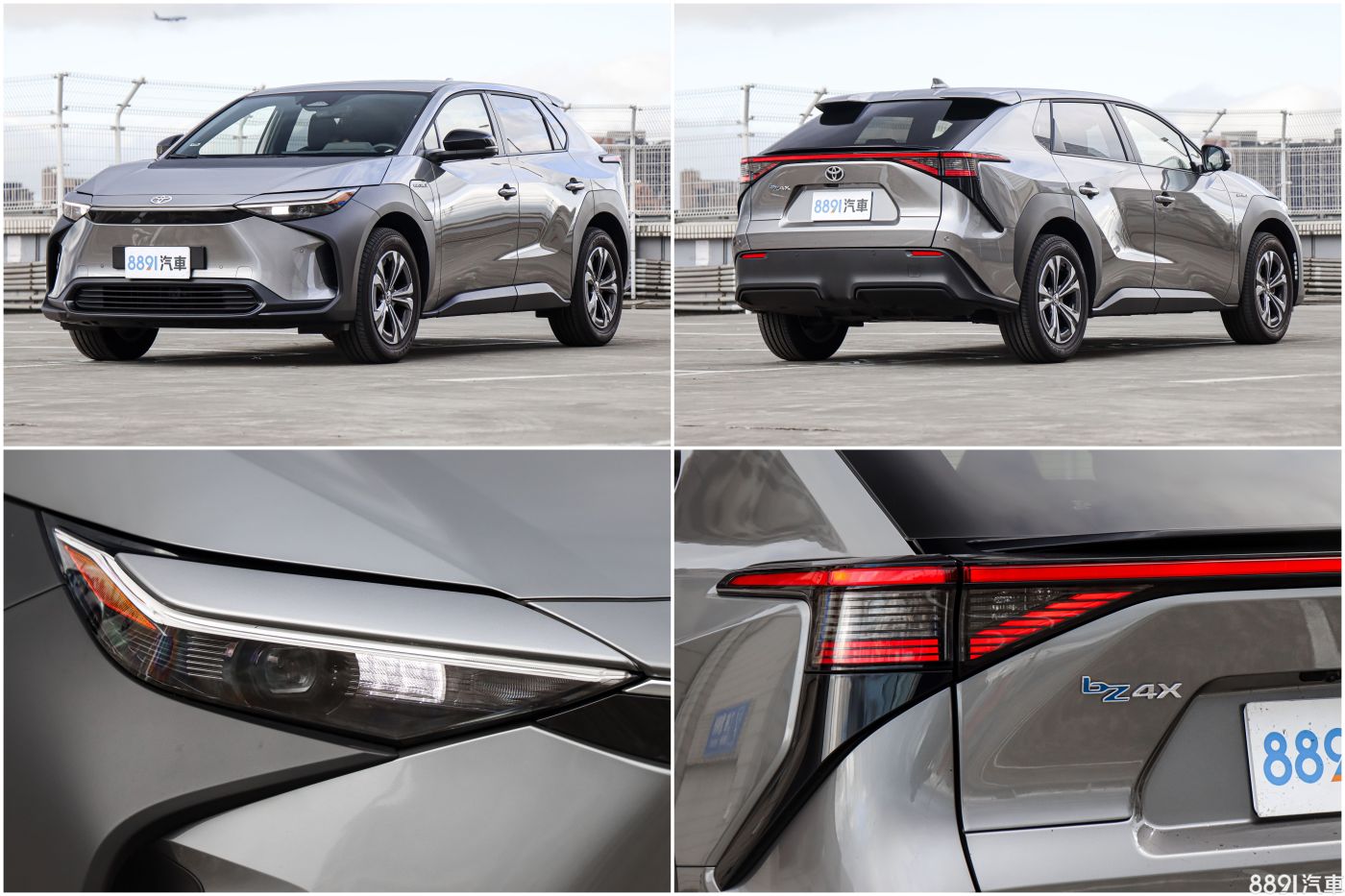 bZ4X擁有時下流行的跨界扮相,高底盤設定,加上大面積輪拱防刮飾板,給人動感活潑的感覺,以車身尺碼大小來說,接近Toyota自家RAV4。bZ4X在台販售僅有一種規格,搭載全LED頭燈,帶有遠近光自動切換功能,後方採用時下流行的左右橫貫式尾燈設計。