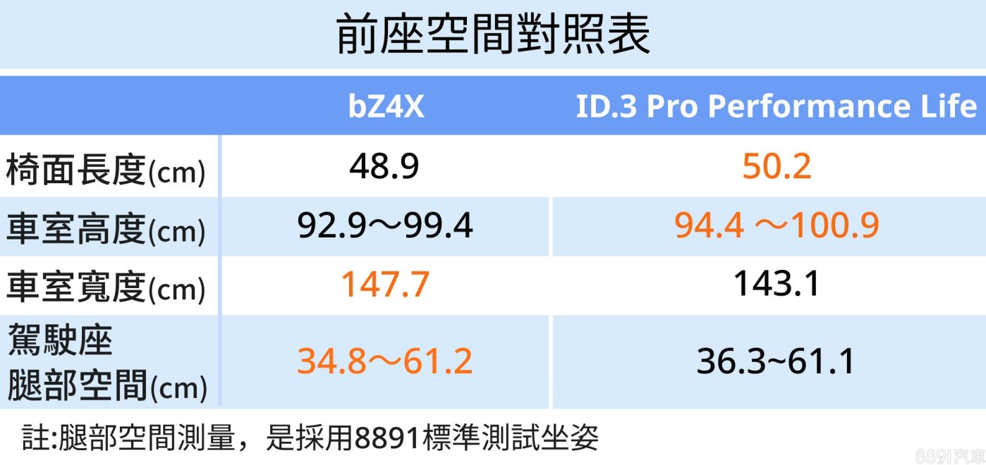 若單看空間丈量數據,ID.3很多項目都輸給bZ4X,但有些東西卻是數據難以呈現的,就像是椅面支撐,就是比bZ4X略好,加上椅背角度、泡棉設定也好,因此整體乘坐感就是比bZ4X來得讓人滿意,但如果單純比空間開闊度,當然還是bZ4X比較好。
