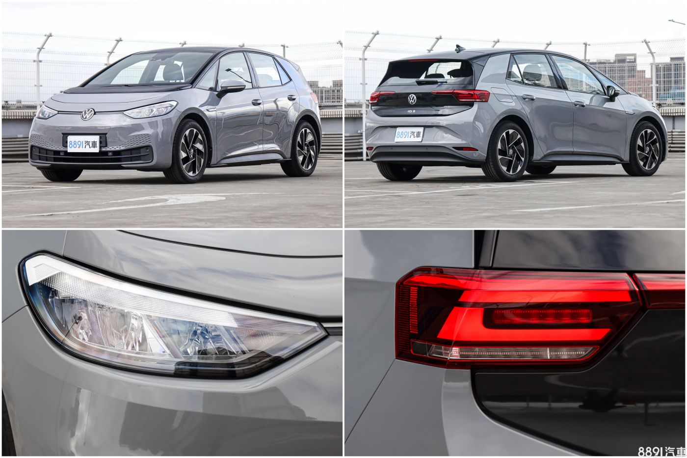 ID.3第一眼看起來像Golf,但實際上車頂更高,比例更圓潤,用來換取更好的空間表現,而巧妙的雙色車身設計,將車頂黑化一路延伸至尾門,讓外觀少了笨重感。貿易商引進的是入門Pro Performance Life版本,頭燈組採反射式LED,視覺感不如同場對手精緻,尾燈造型則與Polo接近,採C字形LED光條設計。
