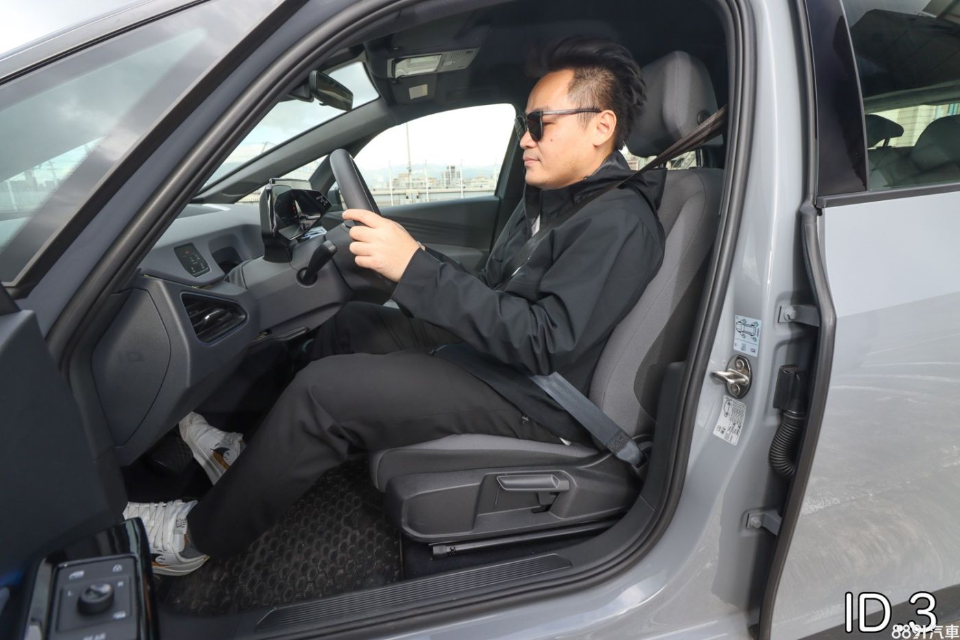 ID.3坐姿與一般房車相當,扣除內裝儀錶設計不說,坐在駕駛座握著方向盤,真的很容易聯想到Golf,但座椅設定卻更為出色,內側多了高度可調整扶手,巡航時「饋手」頗為愜意,加上柔軟貼合身型的泡棉,舒服!真要說唯一缺點,就是沒有電動調整。
